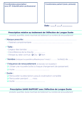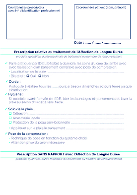Les soins locaux La compression L’Activité Phyique Adaptée Modèles d'ordonnance Le patient Les soins locaux Les soins locaux visent à maintenir un milieu humide contrôlé, gérer l’exsudat et protéger la peau péri-lésionnelle afin d’optimiser la cicatrisation sous compression. Qui peut prescrire ? • Médecins généralistes, • Médecins spécialistes, • IDEL et IPA.1 Comment prescrire ? Ordonnance de prescription pansements pour le pharmacien • Indiquer le nom exact et complet du produit, • Indiquer la taille souhaitée, • Indiquer la fréquence de renouvellement des pansements, • Indiquer le nombre de boîtes, • Indiquer la durée du traitement, renouvelable ou non. Ordonnance de prescription de soins pour l'IDEL • Indiquer la durée des soins, • Indiquer les soins spécifiques de la plaie. La compression La compression, adaptée au patient et au type d’exsudat, reste le traitement de référence : elle réduit l’œdème, améliore le retour veineux et favorise la cicatrisation, tout en prévenant les récidives. Qui peut prescrire ? • Médecins généralistes, • Médecins spécialistes, Les IDEL et IPA ne peuvent pas prescrire et renouveler les bandes de compression.2 Comment prescrire ? Ordonnance de prescription compression pour le pharmacien • Indiquer le nom exact et complet du produit, • Indiquer la taille souhaitée, • Indiquer la fréquence de renouvellement des bandes de compression, • Indiquer le nombre de boîtes, • Indiquer la durée du traitement, renouvelable ou non. Ordonnance de pose de bandes de compression pour l'IDEL • Faire pratiquer par l'IDEL la réalisation d'un pansement complexe avec pose de compression. Les IDEL et IPA peuvent coter la pose de bandes de compression mais pas la pose de bas & chaussettes.3 LES RECOMMANDATIONS DE LA HAS4 Des bandages multitypes en 1ère intention jusqu’à cicatrisation complète. On parle de BANDAGES MULTITYPES : si AU MOINS DEUX BANDES DE COMPRESSION DE TYPES DIFFÉRENTS sont SUPERPOSÉES. L’Activité Physique Adaptée (APA) L‘APA (Activité Physique Adaptée) est une approche thérapeutique qui consiste à prescrire des activités physiques spécifiques et adaptées aux besoins du patient. Dans le cadre des ulcères de jambe veineux, l’APA peut jouer un rôle important pour améliorer la circulation sanguine, prévenir les récidives et soutenir la cicatrisation de la plaie. Pour quels patients ? Les patients souffrant d’Affections Longues Durées (ALD) ou de pathologies chroniques. Qui peut prescrire ? • Médecins généralistes, • Médecins spécialistes, Comment prescrire ? Prescription de l'APA5 • une fiche de prescription médicale, • un ceritificat d’abscene de contre-indications. La prescription de renouvellement d’APA peut être effectuée par le masseur-kinésithérapeute, sauf avis contraire du médecin prescripteur (article L. 4321-1 du CSP). Vers qui orienter le patient ? • Limitation fonctionnelle sévère --> Professionnels paramédicaux (kinésithérapeute, psychomotricien, ergothérapeute), • Limitation fonctionnelle modérée --> Enseignant en Activité Physique Adaptée. Où trouver un enseignement APA ou une maison de santé ? • L’annuaire des enseignants en APA : disponible sur le site de la Société Française des Professionnels en APA (SFP-APA) • L’annuaire des maisons sport santé : disponible sur le site www.sports.gouv.fr Quelle prise en charge ? Actuellement l’Assurance Maladie ne prend pas en charge l’APA. Néanmoins certaines mutuelles ou assurances proposent des remboursements (sous conditions). Modèles d’ordonnances Soins locaux Télécharger Compression Télécharger Prescription soins infirmiers Télécharger Activité Physique Adaptée Télécharger Le patient Le patient joue un rôle essentiel dans la prise en charge de son ulcère de jambe veineux. L’impliquer dans le suivi de ses soins, dans l’acceptation du port de sa compression, à réaliser de l’activité physique, à avoir une bonne alimentation et hygiène, permettra de le responsabiliser et d’accroitre la cicatrisation. Un patient observant pour une cicatrisation gagnée ! Découvrez les solutions Urgo Medical UrgoK2 UrgoK2 : un système de compression multitypes bi-bande. Non substituable. Découvrir ce produit UrgoStart Plus Border Pansement hydrocellulaire adhésif à forte capacité d’absorption, avec fibres polyabsorbantes et matrice TLC-NOSF. Non substituable. Découvrir ce produit URGOSTART PLUS COMPRESSE Pansement hydrocellulaire non adhésif avec fibres polyabsorbantes et matrice TLC-NOSF. Non substituable. Découvrir ce produit URGOSTART INTERFACE Pansement interface souple avec matrice TLC-NOSF. Non substituable. Découvrir ce produit URGOSTART PLUS ABSORB Pansement hydrocellulaire non adhésif à forte capacité d’absorption, avec fibres polyabsorbantes et matrice TLC-NOSF. Non substituable. Découvrir ce produit Chroniques de la même catégorie Publié le 12 janvier 2026 Insuffisance veineuse Physiopathologie de l’ulcère de jambe veineux Lire la suite Publié le 12 janvier 2026 Ulcère de jambe veineux Les recommandations pour le traitement de l’ulcère de jambe veineux Lire la suite Publié le 12 janvier 2026 Insuffisance veineuse Examens cliniques de l’ulcère de jambe Lire la suite Publié le 14 octobre 2025 Pansement Comment bien choisir son pansement en fonction de la plaie ? Lire la suite Publié le 12 janvier 2026 Insuffisance veineuse Comment mesurer l’Indice de Pression Systolique (IPS) ? Lire la suite 1. JORF - NOR : SSAS1916881V 2. JORF - NOR : ETSH1208335A. 3. NGAP05092022. 4. Bon usage des technologies de santé. La compression médicale dans les affections veineuses chroniques. HAS décembre 2010. Document de la Haute Autorité de Santé, disponible sur le site www.has-sante.fr. 5. LOI n° 2016-41 du 26 janvier 2016 de modernisation de notre système de santé. Décret n° 2016-1990 du 30 déce